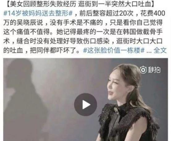 在節(jié)目里,吳曉辰說有一次去韓國(guó)做手術(shù),傷口愈合不好,導(dǎo)致她當(dāng)街口吐鮮血,還有下巴掉到胸前的經(jīng)歷。只能說她的運(yùn)氣真的很好,也有實(shí)力不斷進(jìn)行修復(fù),所以她現(xiàn)在的臉,雖然不一定符合所有人的審美,但不可否認(rèn)它是一張比例、左右對(duì)稱,在技術(shù)上沒有瑕疵的臉。