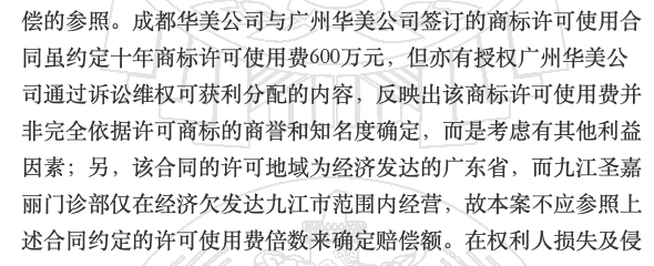 值得注意的是,由于廣州華美在整形美容領(lǐng)域有實(shí)際使用“華美”商標(biāo),一定程度上使得廣東省內(nèi)的華美醫(yī)院賠償金額較高。