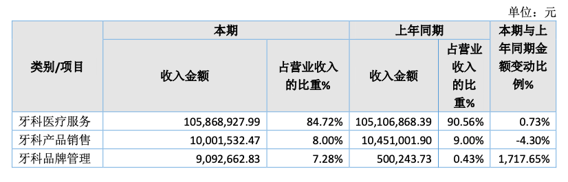 這一年,華美牙科也扭虧為盈,實(shí)現(xiàn)歸母凈利潤3368.59萬元,也是目前為止突破千萬利潤的一年。而上述的品牌管理類收入就占利潤的27%,接近三成。