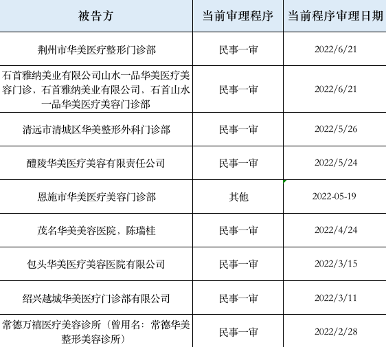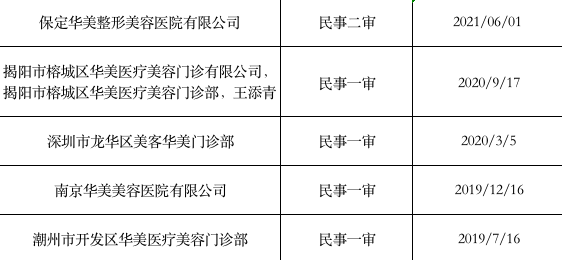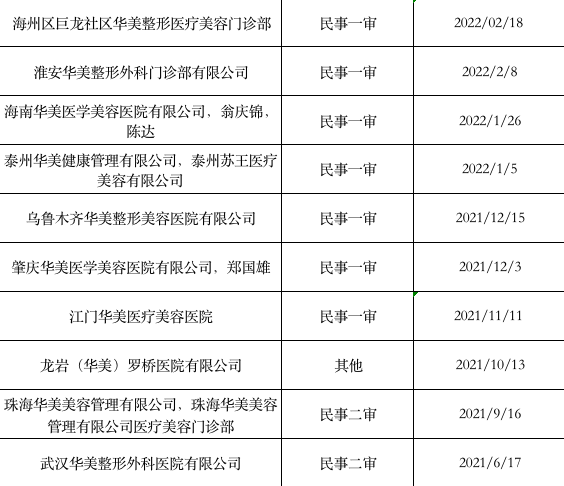 據(jù)時(shí)代財(cái)經(jīng)不完全統(tǒng)計(jì),自2017年起,華美牙科就其他在整形美容領(lǐng)域的華美醫(yī)院的侵害商標(biāo)權(quán)糾紛、侵害商標(biāo)權(quán)及不正當(dāng)競爭糾紛、知識產(chǎn)權(quán)與競爭糾紛等,共起訴了全國41家華美醫(yī)院,涉及新疆、山東、湖南、廣西、廣東等多個(gè)省份。