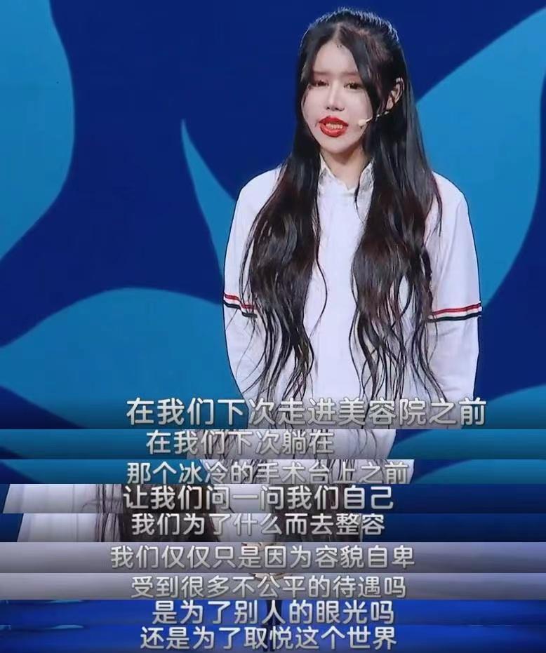 周楚娜曾經(jīng)在演講中講過《整形的“代價(jià)”》,講述她13歲整容,做了8次雙眼皮,6次鼻子……
