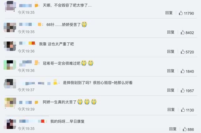 網(wǎng)友粉絲們對此紛紛留言表示擔心:這也太嚴重了吧,心疼阿嬌,不會留疤吧,希望阿嬌能早日康復(fù)~