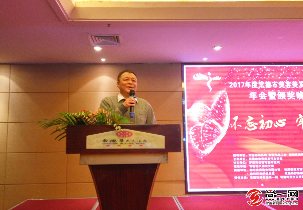 常德市美容美發(fā)行業(yè)協(xié)會(huì)秘書長(zhǎng)劉立輝致辭。尚一網(wǎng)見習(xí)記者 胡軍