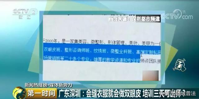 不僅是注射整形,雙眼皮手術(shù)也被曝出驚人一幕??赡芙o你做雙眼皮手術(shù)的人,只學(xué)了3天就出師了。近日,記者暗訪了深圳某整形培訓(xùn)學(xué)校,老師不僅表示會拿針縫衣服就會做雙眼皮,而且真的就是3天出師。