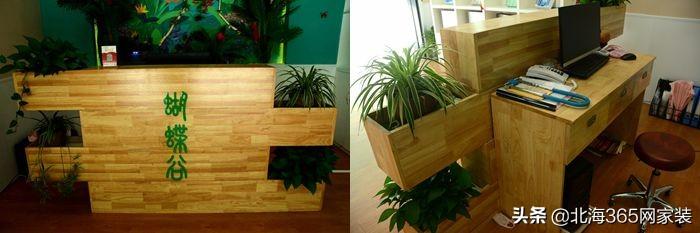 說完墻面的森林系背景墻后,前臺這個類似俄羅斯方塊的收銀臺,真的太有個性。不過小編再看看感覺,有點像蝴蝶的樣子(可能給名字洗腦了)。嚴工告訴妞妞,剛開始老板娘的需求是前臺不要那么呆板,帶動作感,又要有自然的氣息。結(jié)果嚴工和老板娘討論一個星期才確定這樣設(shè)計。