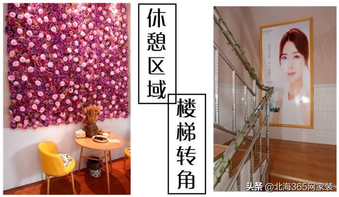 休憩的區(qū)域的百花墻讓小編忍不住掏出我64G的華為手機,來個32G的自拍!這個墻面相比前臺的森林墻,操作起來容易多了。小仙女們你們家出租屋的房間或者餐廳可以參考哦!仙氣滿滿!