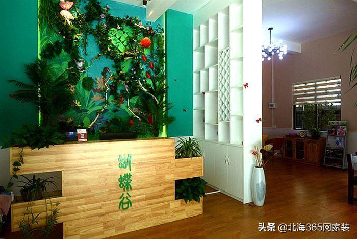 看來門口有這么大的變化,里面的變化簡直不敢想象!趕快推開門看看里面到底變成什么樣子了!推門進去,被這個綠蔥蔥的背景墻深深吸引了,慌神間以為自己到森林里啦。
