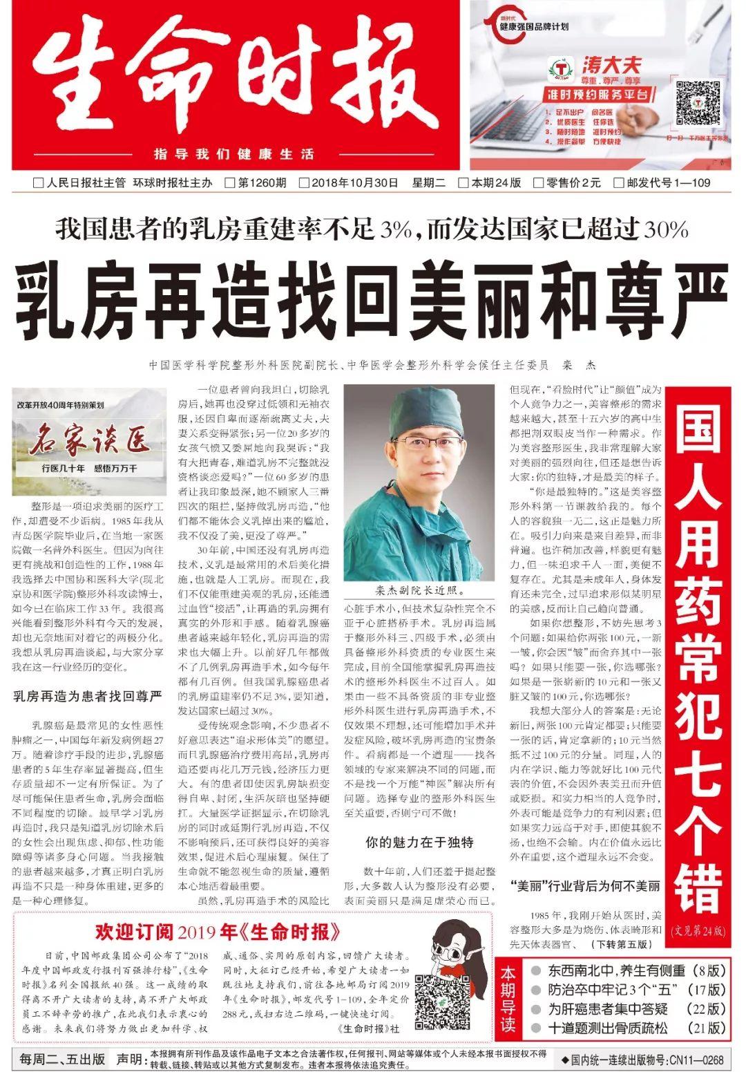 《生命時報》第1260期頭版刊發(fā)中國醫(yī)學(xué)科學(xué)院整形外科醫(yī)院副院長、中華醫(yī)學(xué)會整形外科學(xué)會候任主任委員欒杰撰寫的《乳房再造找回美麗和尊嚴》,暢談他對乳房再造的研究和思考。
