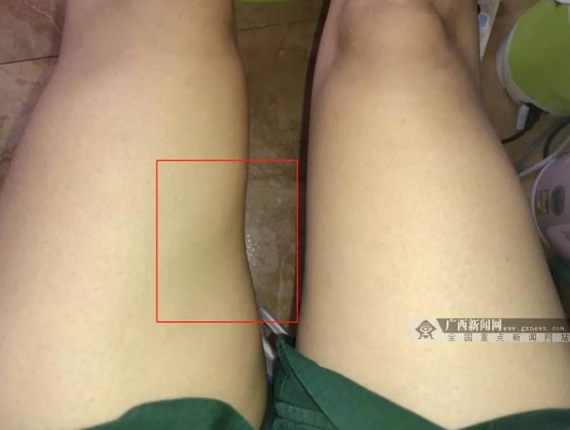 小玲左大腿中段位置出現(xiàn)凹陷
