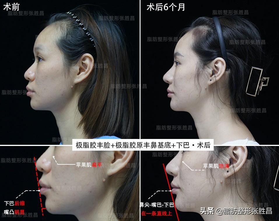 術(shù)后6個月,美女通過極脂膠&極脂膠原的綜合改良,外輪廓飽滿流暢,蘋果肌豐滿后高光點內(nèi)移,高顴骨減弱,改良鼻基底+下巴,正面三庭比例更均勻,側(cè)面也更符合審美標(biāo)準(zhǔn)。