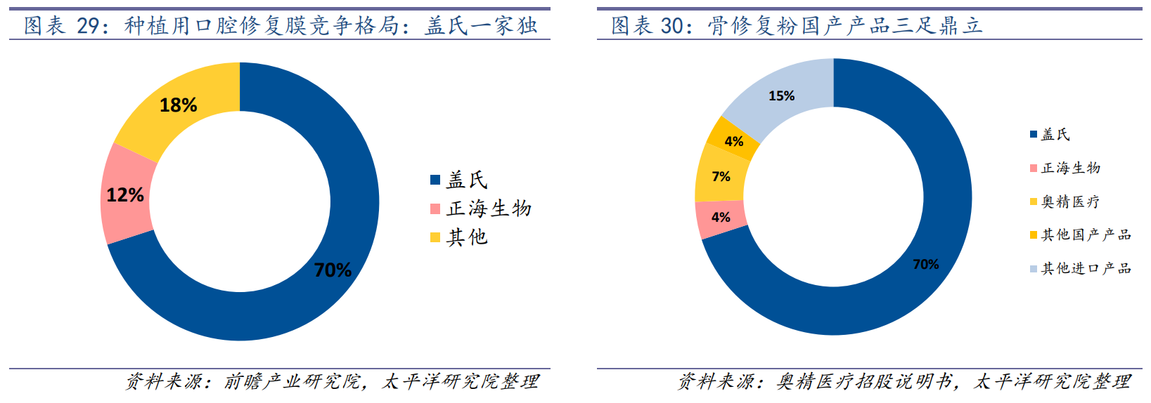 國(guó)內(nèi)企業(yè)中,正海生物在口腔修復(fù)膜上有一定競(jìng)爭(zhēng)力,市占率超過10%;骨修復(fù)材料上,正海也有4%的份額。
