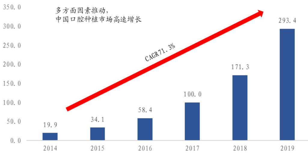 不過,近年來在人口老齡化、消費(fèi)升級(jí)等邏輯驅(qū)動(dòng)下,國(guó)內(nèi)口腔種植市場(chǎng)呈高速增長(zhǎng)態(tài)勢(shì),根據(jù)Straumann的年報(bào)數(shù)據(jù)估計(jì),2019年相關(guān)市場(chǎng)規(guī)模接近300億元,按照與發(fā)達(dá)對(duì)比,未來總體規(guī)??蛇_(dá)2000億元。