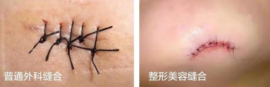 普通縫合普遍是單層縫合,創(chuàng)口不平整、張力大,主要是將傷口對(duì)合或重建通道,恢復(fù)其功能,美容果并不是首要考慮的問(wèn)題。
