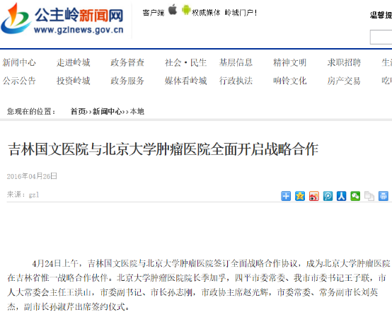 如果民營醫(yī)院資金雄厚,好的辦法還是院間合作,直接把北京或上級醫(yī)院的名頭拿來用果更好。下面配一張圖片,這是吉林省公主嶺市國文醫(yī)院的名頭,既有吉林大學(xué)又有北京大學(xué),既得到了政府的支持,又得到了專家的幫助,技術(shù)水平提升,百姓認(rèn)可,至于益根本不用愁!