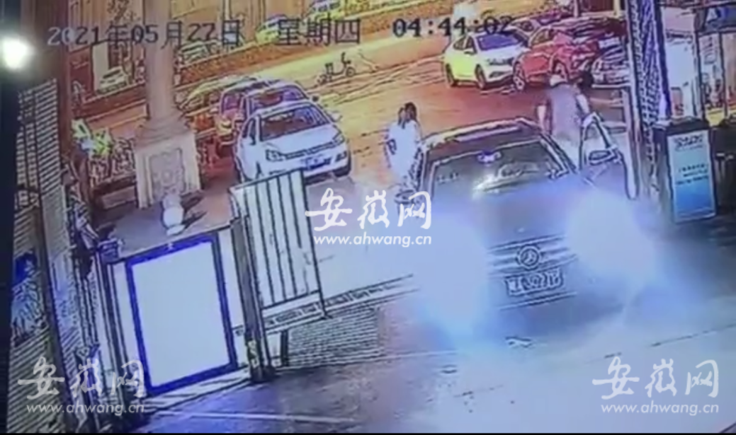 5月28日,新安晚報(bào)、安徽網(wǎng)、大皖新聞?dòng)浾邚脑撔^(qū)物業(yè)那里拿到一段事發(fā)時(shí)的監(jiān)控視頻,這段4分多鐘的視頻記錄下事發(fā)時(shí)的一些情況。監(jiān)控視頻時(shí)間顯示5月27日凌晨4點(diǎn)43分,一輛奔馳車停在小區(qū)的入口道閘下,一名男子站在駕駛室的車門(mén)旁,拿著手機(jī)和一名保安在交流,男子不時(shí)指向大門(mén)東側(cè)不遠(yuǎn)處的一輛共享單車,保安示意男子先把道閘下的車開(kāi)進(jìn)去。之后雙方向東邊走去,只過(guò)了幾十秒,4點(diǎn)43分49秒,保安走到了這名男子的前面,突然這名男子從身后猛踹了保安一腳。