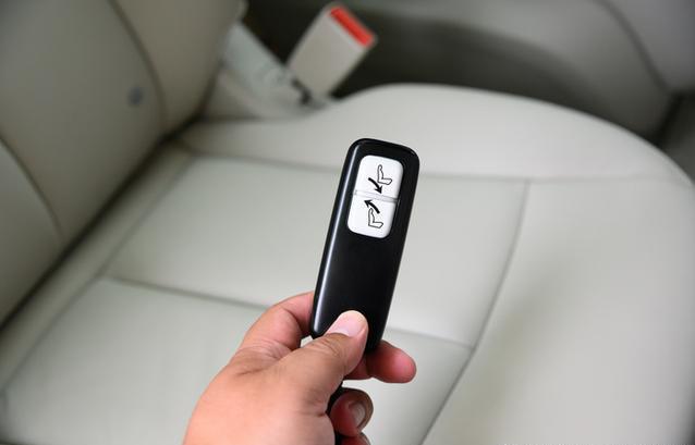 操作方式很簡(jiǎn)單,在座椅前方配備了一個(gè)有線遙控器,座椅右側(cè)前方也有相關(guān)的按鈕,長(zhǎng)按就可以讓座椅出來(lái)或者進(jìn)去,全程電動(dòng),輕松可控。