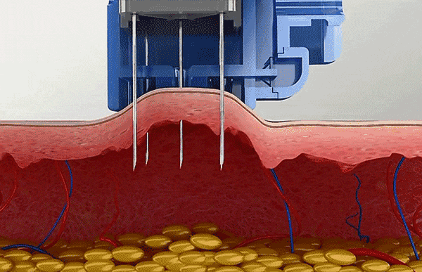 微針主要的作用是修復(fù)敏感肌膚,去除痘印,改良膚質(zhì),還可以祛斑美白。通過滾輪上小針刺破皮膚開通微小通道,促進(jìn)有成分的透皮吸收,促進(jìn)色素顆粒的排出,使表皮細(xì)胞更替,組織重建,皮膚屏障修復(fù)。