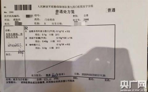 2020年3月2日,王女士被解放軍940醫(yī)院安寧分院診斷為“布魯氏菌病、慢性布病關(guān)節(jié)炎、白細(xì)胞低下”。在醫(yī)院給王女士的處方上,記者看到,“診斷:布魯氏菌病、布病性關(guān)節(jié)炎、白細(xì)胞低下。處方為:鹽酸多西環(huán)素分散片、利福平膠囊和咖啡酸片乙,處方醫(yī)生:魏嘉”。