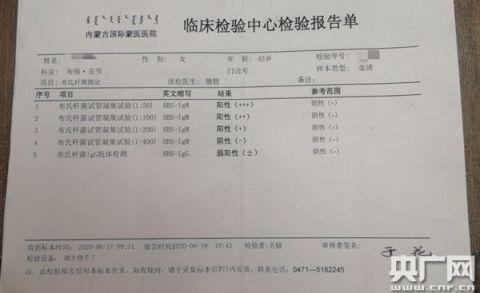 李女士在內(nèi)蒙古國(guó)際蒙醫(yī)醫(yī)院檢查的檢驗(yàn)報(bào)告單(中央廣播電視總臺(tái)央廣記者 任夢(mèng)巖 攝)