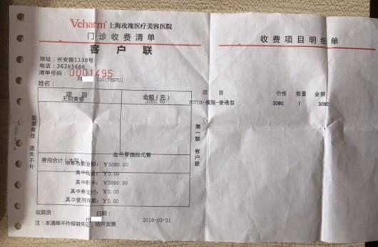 圖說:劉女士2018年瘦臉時的繳費清單 受訪者供圖