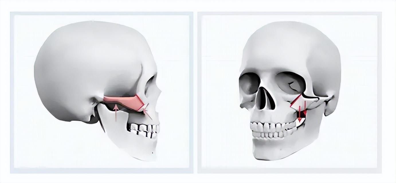 顴骨體和下頜骨體之間存在空間,這個空間越大,能夠內(nèi)推的空間就越大,顴骨體縮窄和降低的果就更,顴骨體內(nèi)推的極限在于不能夠妨礙下頜骨喙突的運動。