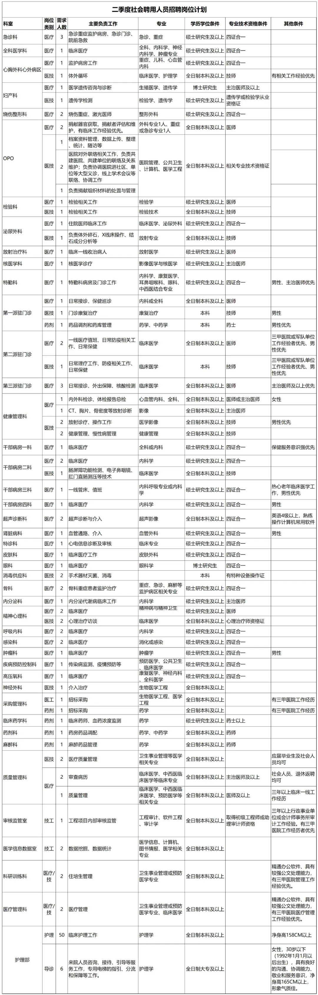 一、招聘崗位及條件(一)醫(yī)療、醫(yī)技、藥學類