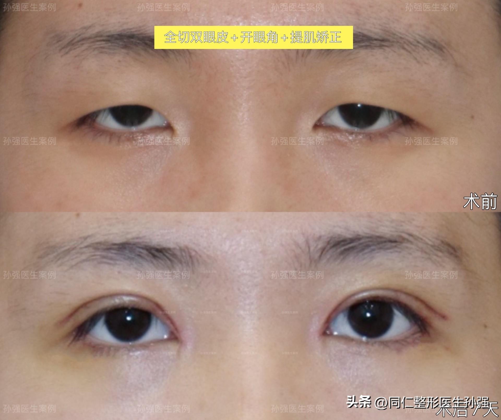 眼角較圓的單眼皮,如果不開內(nèi)眼角,就只能獲取一雙小內(nèi)雙的眼睛,而開眼角結合雙眼皮手術則增長了瞼裂,增大了眼睛外形。