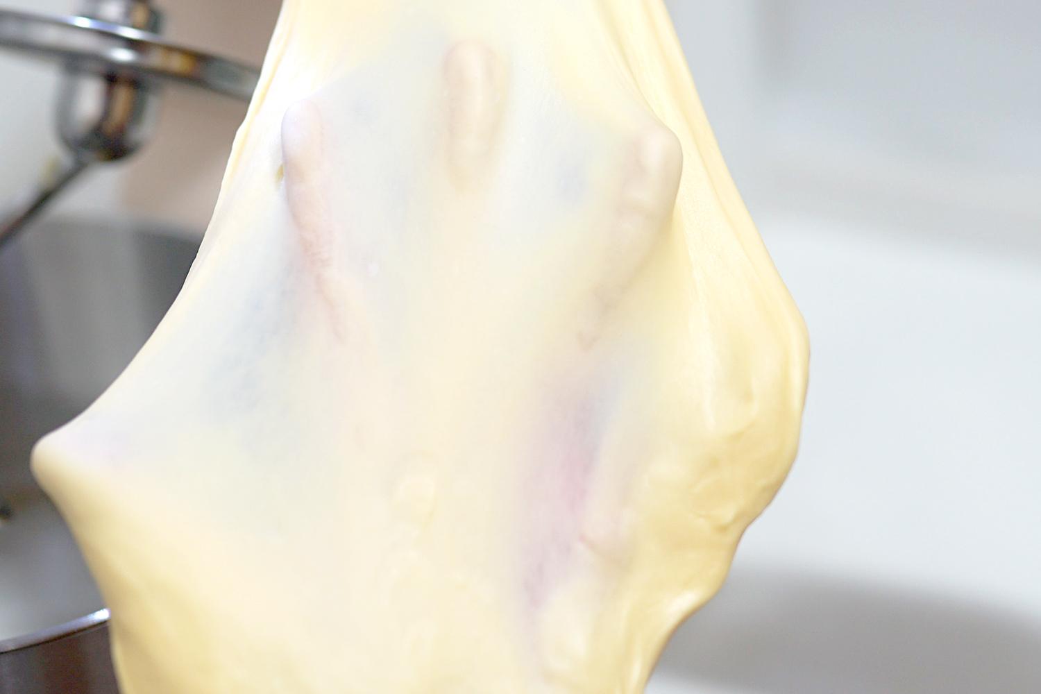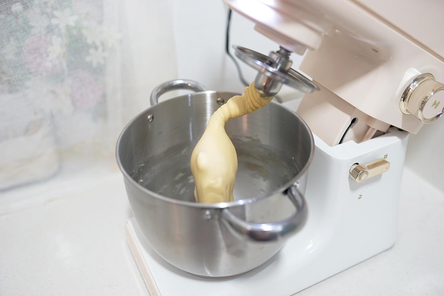 首先當(dāng)然是揉面,想要做出暄軟而多層次的面包,關(guān)鍵的一步就是借助廚師機(jī)揉出的手套膜。