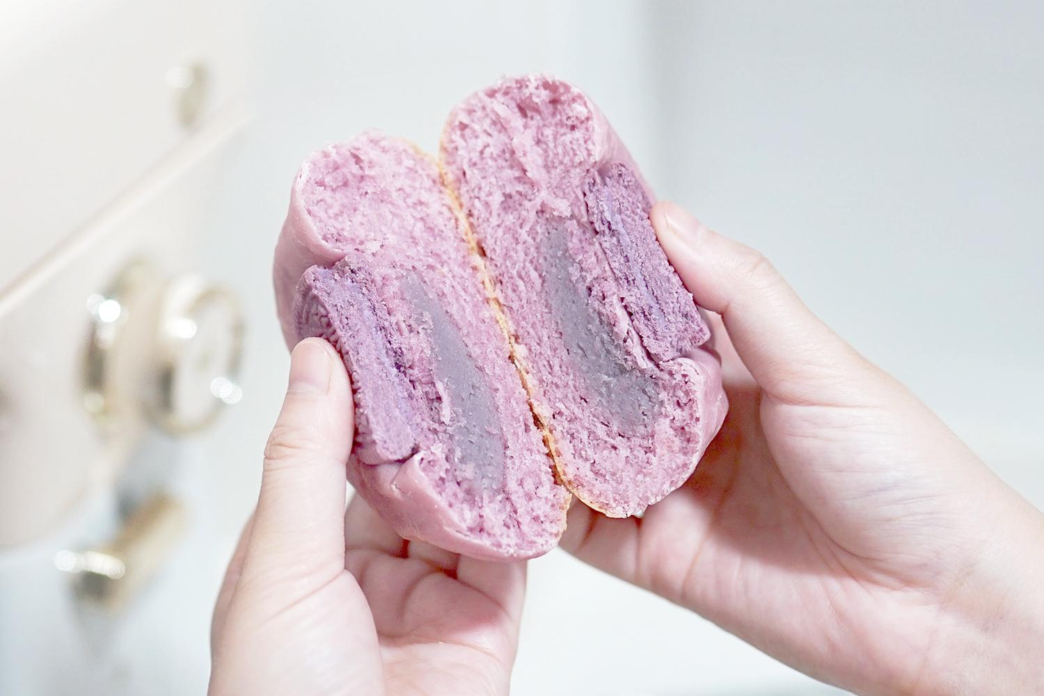 掰開內(nèi)里是奶香奶香的芋泥餡,面包區(qū)域松軟有彈性,好吃的很!
