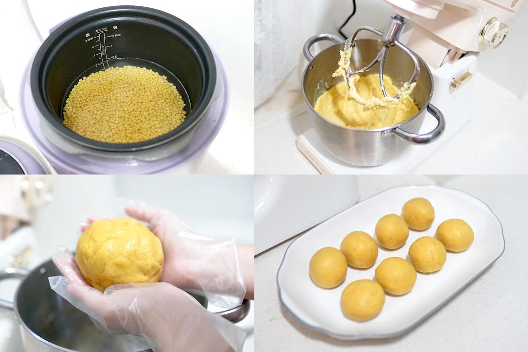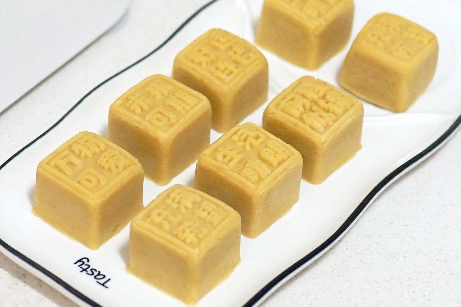 所需食材:脫皮綠豆200g、麥芽糖50g、糖粉120g、黃油90g