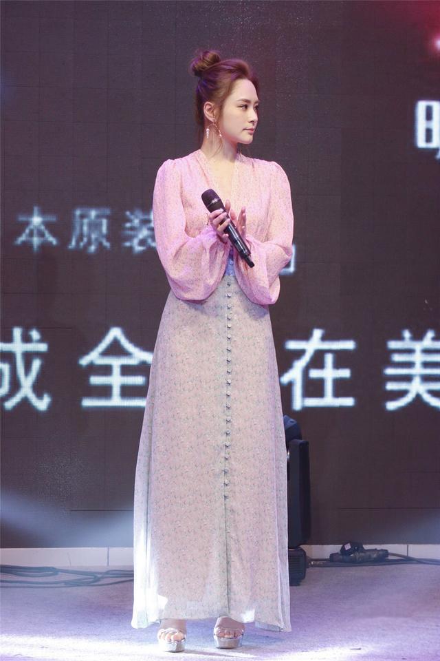 粉色的連衣裙雖然添上了波點的元素,只是很可惜并沒有改變阿嬌的狀態(tài)。這件連衣裙自帶收高腰線的設(shè)計,一片粉色的迎合下并不突出,但是也沒有什么亮點。和阿Sa站在一起,就在身材比例上,阿嬌就被碾壓了不少。