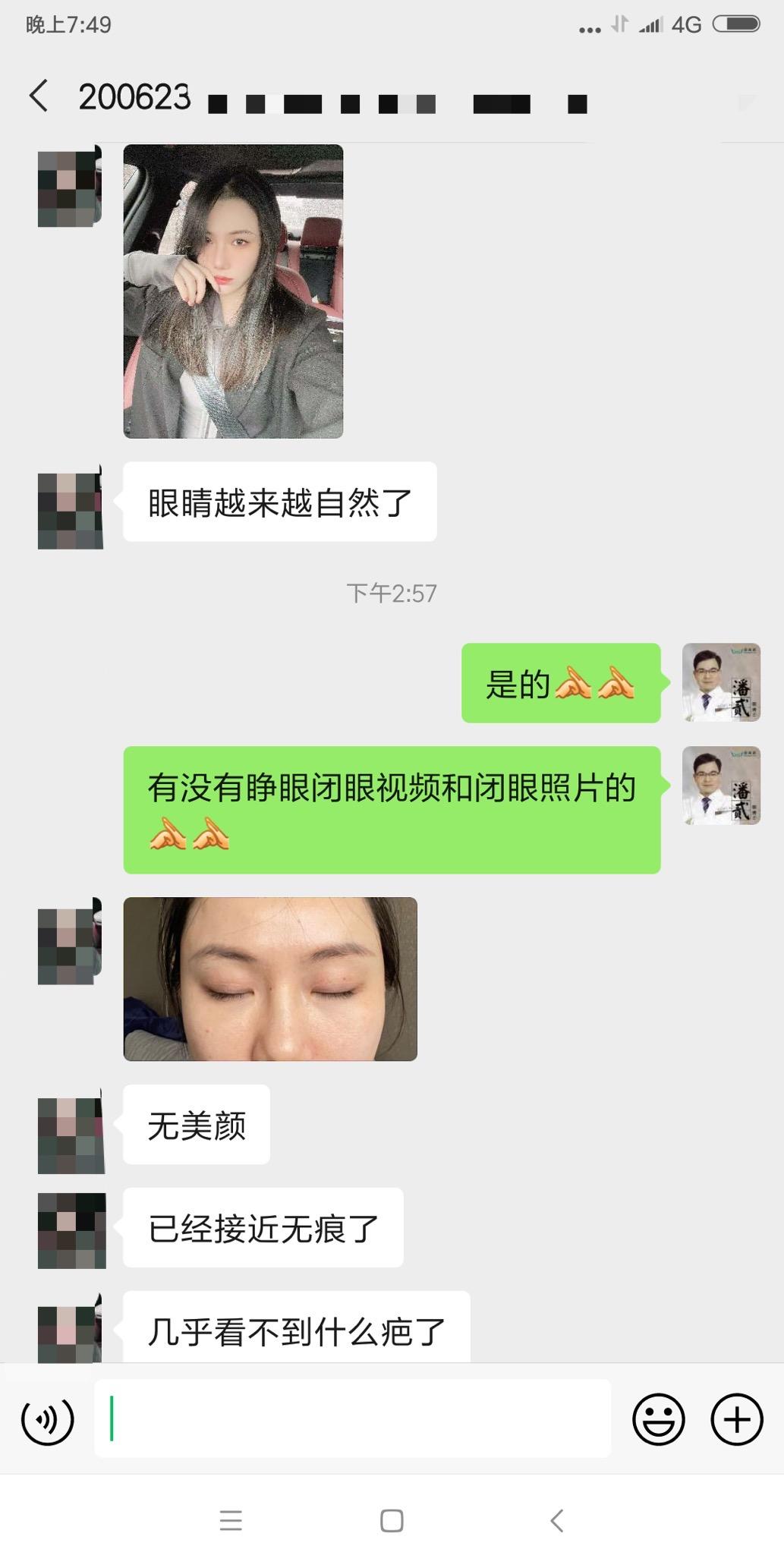 術(shù)后7個(gè)月雙眼皮恢復(fù)良好,美女直接發(fā)來反饋“無美顏,雙眼皮都接近了,幾乎看不到什么疤了”。