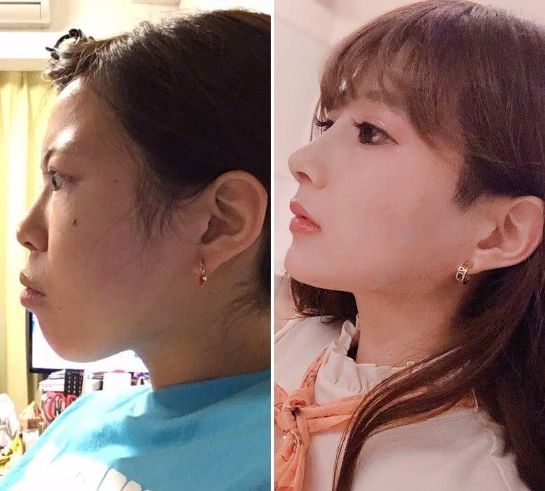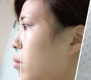 側(cè)面對比照看,鼻背變得高挺立體,而且原來低垂上縮的鼻尖變高變長,有種韓式小翹鼻的感覺。