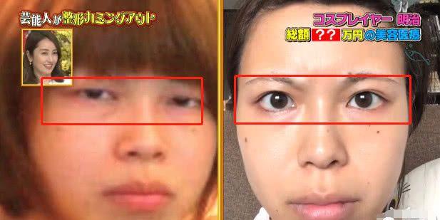 從舊照來看,明治五官大的缺陷在于眼裂高度、長度不足,顯得比較短小,有種瞇瞇眼的感覺。