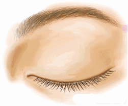 當睜眼時,此溝以下的皮膚上移,而此溝上方的皮膚則松弛在重瞼溝處懸垂下折,而雙眼皮和單眼皮就在于這幾毫米的差別。