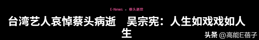 2022年,患末期肝癌的蔡頭在醫(yī)院離世,享壽71歲。蔡頭的半生,風光過,也破產(chǎn)落魄過,吳宗憲形容他“人生如戲戲如人生”。