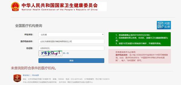 山東沃德喜悅醫(yī)療美容有限責任公司是否取得了《醫(yī)療機構執(zhí)業(yè)許可證》呢,就此問題,記者也咨詢了濟南高新區(qū)社會事務局,該局工作人員回復稱,具體是否具有《醫(yī)療機構執(zhí)業(yè)許可證》可通過山東省衛(wèi)健委官網進行查。隨后記者進行了查詢,系統(tǒng)提示未查詢到符合條件的醫(yī)療機構。
