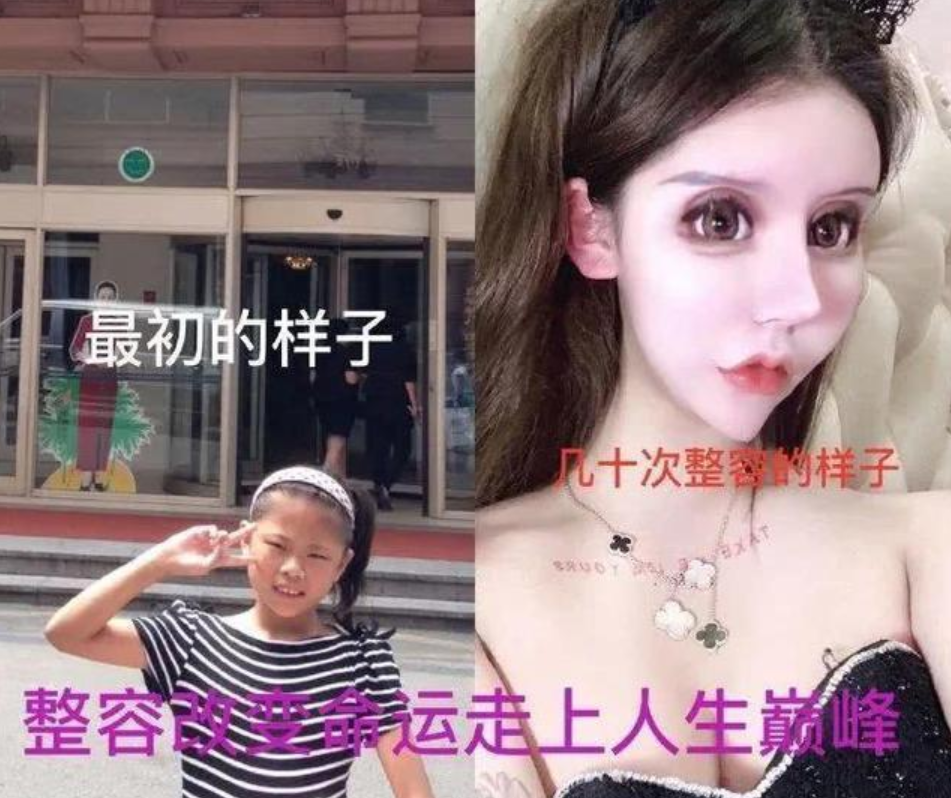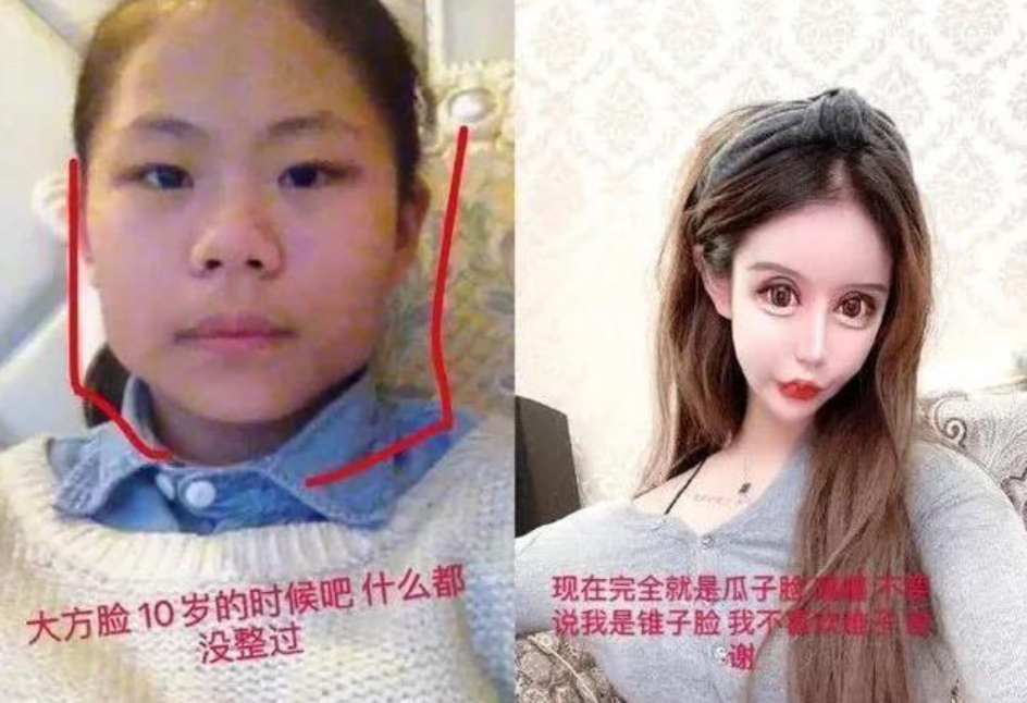 從照片中來(lái)看女孩小時(shí)候的模樣確實(shí)有些一般,但也沒(méi)有那么難看,只不過(guò)是沒(méi)有那么美罷了,可是女孩自己并不滿意,于是開始從眼睛整起,之后從鼻子到嘴巴再到整體臉型,幾乎臉上每個(gè)地方都整過(guò)了。