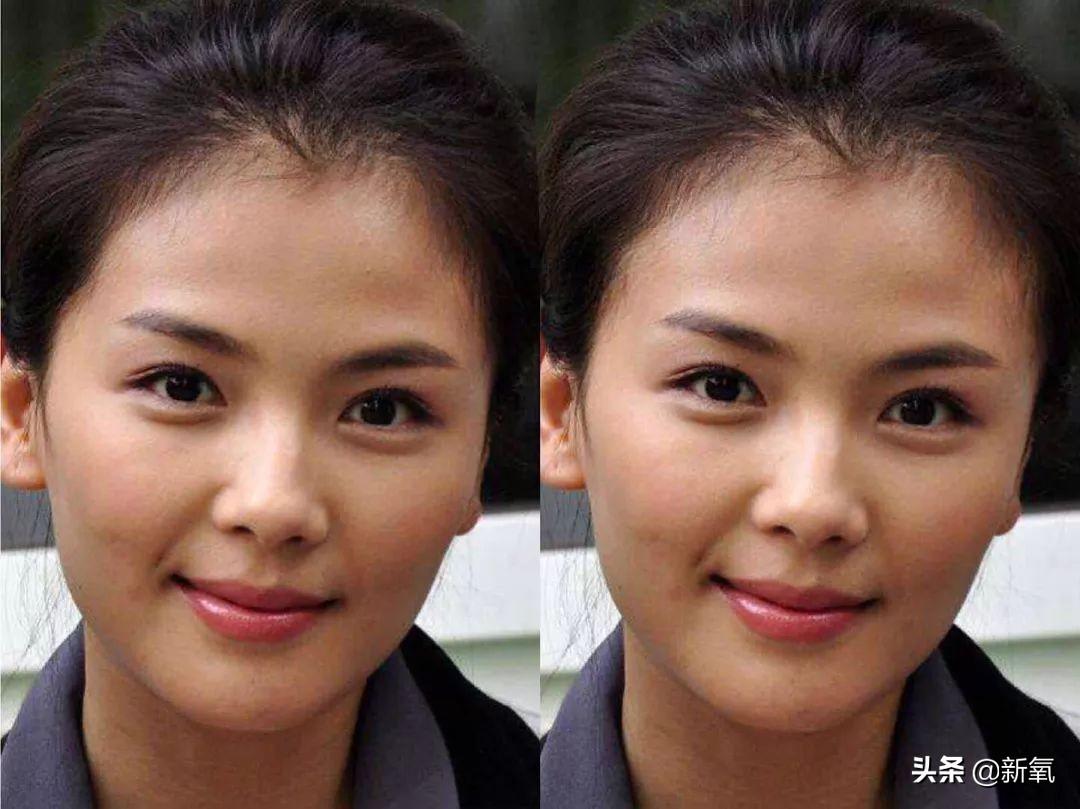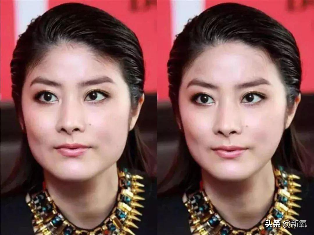 劉濤從來都是高顴骨+太陽穴凹陷的反面例子,但歸根究底,氧叔認(rèn)為其實(shí)是她的顳部太窄導(dǎo)致。比起各種說讓她封太陽穴和顴骨內(nèi)推的建議,只要我們稍稍改一下劉濤的顳部寬度,即使顴骨不變,整張臉的局促感是不是降低了?