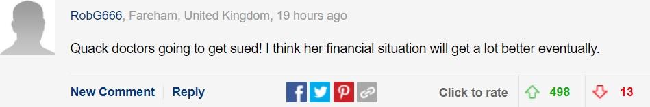 “庸醫(yī)應該被起訴!我認為她的經(jīng)濟狀況會因此好轉(zhuǎn)?!?/span>
