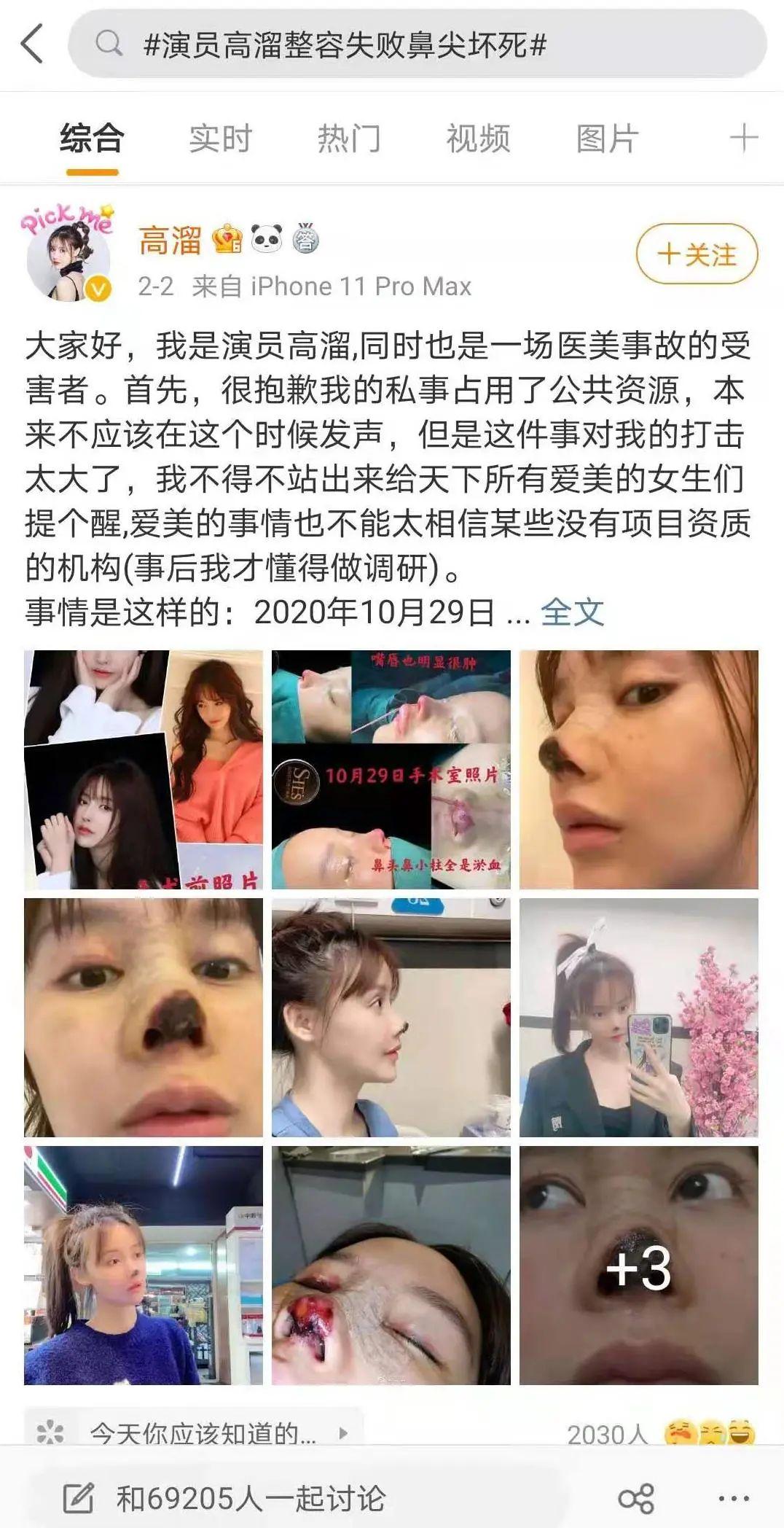演員高溜發(fā)微博稱自己整容失敗鼻尖壞死使用未取得資質(zhì)的醫(yī)師醫(yī)美機構(gòu)被罰49000元據(jù)官方發(fā)布的輿情通報,針對媒體報道有演藝人士2020年10月29日在廣州熙施時光美容門診部有限公司(不具備整形資質(zhì))進行隆鼻術(shù),術(shù)后出現(xiàn)傷口愈合不良等癥狀后取出植入假體的情況,廣州市衛(wèi)生健康委高度重視,組織天河區(qū)衛(wèi)生健康局對廣州熙施時光美容門診部進行核查。