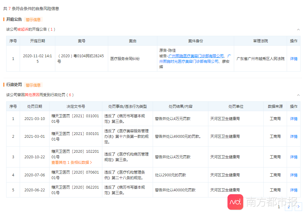 天眼查顯示該機構(gòu)開業(yè)一年多以來總共受到6次行政處罰,開庭公告有1條。醫(yī)美糾紛案件逐年上升朝陽法院建議從重處罰在顏值經(jīng)濟加持下,醫(yī)美市場逐漸走俏。據(jù)中國整形美容行業(yè)協(xié)會近日發(fā)布的年度報告預(yù)測,到2022年,中國整形市場規(guī)模將達到3000億元,強勁的市場需求也帶動了上游產(chǎn)品和產(chǎn)業(yè)的快速發(fā)展。天眼查專業(yè)版數(shù)據(jù)顯示,近年來我國醫(yī)美整形相關(guān)企業(yè)年注冊量整體呈現(xiàn)上漲趨勢,近7成的相關(guān)企業(yè)注冊于5年內(nèi)(全部企業(yè)狀態(tài))。不過隨著醫(yī)美市場不斷擴容,相關(guān)糾紛和投訴數(shù)量也大幅增多。有媒體在裁判文書網(wǎng)上以“醫(yī)美”、“糾紛”為關(guān)鍵詞,發(fā)現(xiàn)2016年之后,相關(guān)判決數(shù)量激增。特別是在2020年,醫(yī)美糾紛相關(guān)案件數(shù)量達到頂峰。