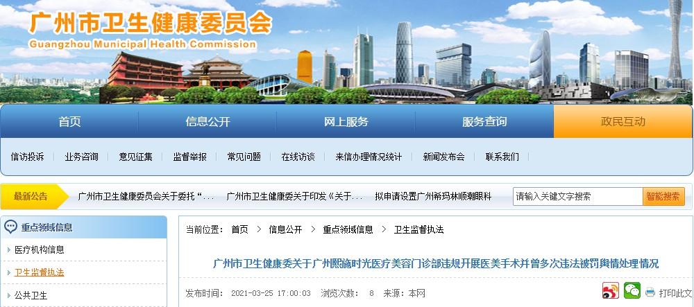 經(jīng)調(diào)查,實施手術(shù)的醫(yī)師未取得獨立實施美容外科手術(shù)的醫(yī)療美容主診醫(yī)師資質(zhì)。天河區(qū)衛(wèi)生健康局依據(jù)《執(zhí)業(yè)醫(yī)師法》給予該醫(yī)師暫停六個月執(zhí)業(yè)活動的行政處罰;該門診部使用未取得相應(yīng)資質(zhì)的醫(yī)師單獨開展隆鼻術(shù),違反《醫(yī)療美容服務(wù)管理辦法》,對該門診部給予警告,并處以49000元罰款的行政處罰。關(guān)于媒體反映該機構(gòu)曾多次違反醫(yī)療機構(gòu)規(guī)定遭到行政處罰的問題,經(jīng)核查,自2019年熙施時光醫(yī)療美容門診部開業(yè)以來,天河區(qū)衛(wèi)生健康局多次對該門診部進行日常監(jiān)督檢查,結(jié)合疫情防控、整治醫(yī)療美容亂象等專項行動,加大監(jiān)管力度?,F(xiàn)場監(jiān)督檢查10余次,重點對醫(yī)療質(zhì)量、病歷書寫規(guī)范、依法執(zhí)業(yè)行為等進行監(jiān)管和檢查,現(xiàn)場指出存在問題,責(zé)令立即整改,共給予6次行政處罰及相應(yīng)不良執(zhí)業(yè)行為記分處理。