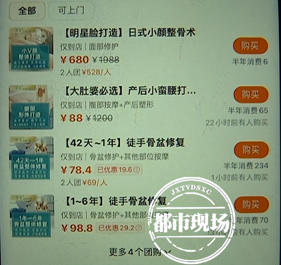 記者通過網(wǎng)絡(luò)平臺搜索發(fā)現(xiàn),“修蔻產(chǎn)后徒手骨態(tài)重塑”紅谷灘區(qū)店曾有不少團購項目,包括日式小顏整骨術(shù)、徒手盆骨修復(fù)等。服務(wù)時間為周一至周四,正在營業(yè)中。不過撥打商家的電話,始終無人接聽。而主頁信息顯示,店址位于紅谷灘區(qū)翠苑路萬達星城頤園北區(qū)1棟17號。5月5號,記者根據(jù)該地址找去,卻發(fā)現(xiàn)商鋪外同時掛著“修蔻”和“藥隱堂”兩塊招牌。