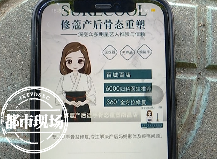 劉女士說,因為自己的胯比較寬,顯得下身胖、腿還短,無意間她在網(wǎng)上看到一些廣告介紹稱,通過徒手正骨可以進行改良。網(wǎng)上眾多商家中,劉女士選中了“修蔻產(chǎn)后徒手骨態(tài)重塑”南昌店,并于2021年8月8號,去往位于萊蒙都會商業(yè)中心5棟的門店做咨詢。