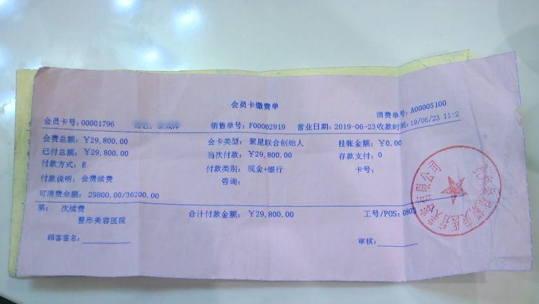 徐女士:他就說交定金簽合同,以后你來,消費(fèi)就有3.5折,原本削骨是8萬多,我交29800元就可以做了。
