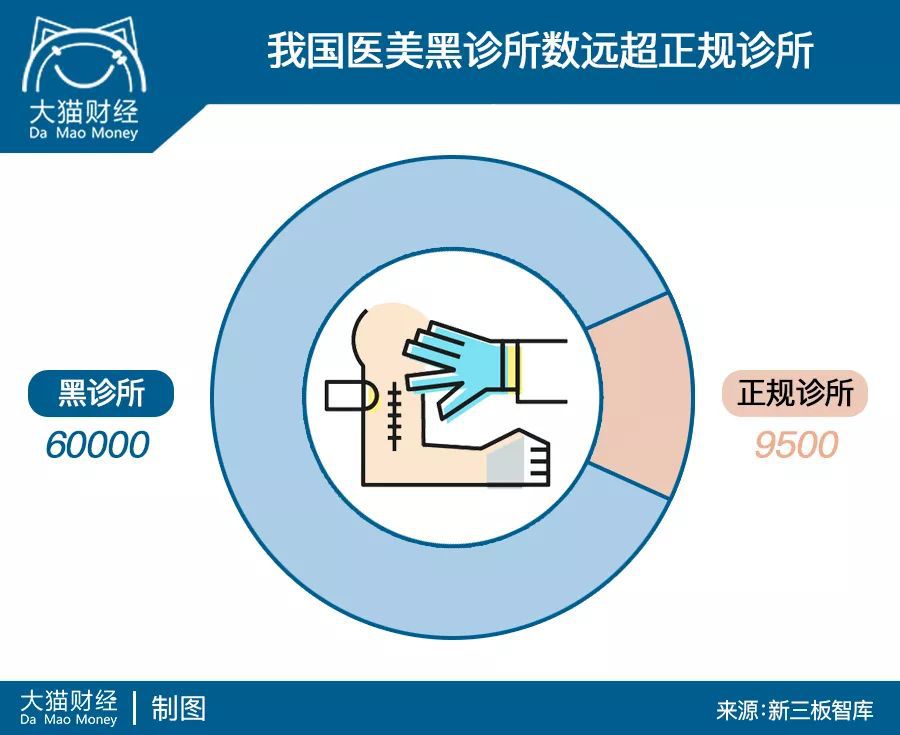統(tǒng)計顯示,中國黑診所數(shù)量已超六萬家,是正規(guī)診所的6倍;黑診所年手術(shù)量為正規(guī)診所的2.5倍,超2500萬例。