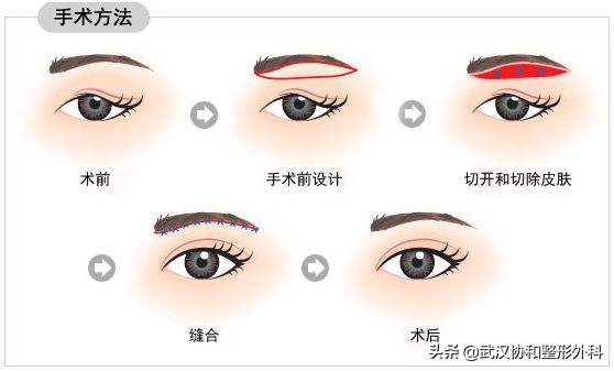 一般是在上眼皮上做3個僅有1-2mm的不連續(xù)的微小切口,去除少量脂肪和眼輪匝肌后,將縫線分別穿過3個切口打活結,等調整好瞼緣弧度后再依次縫合打結。