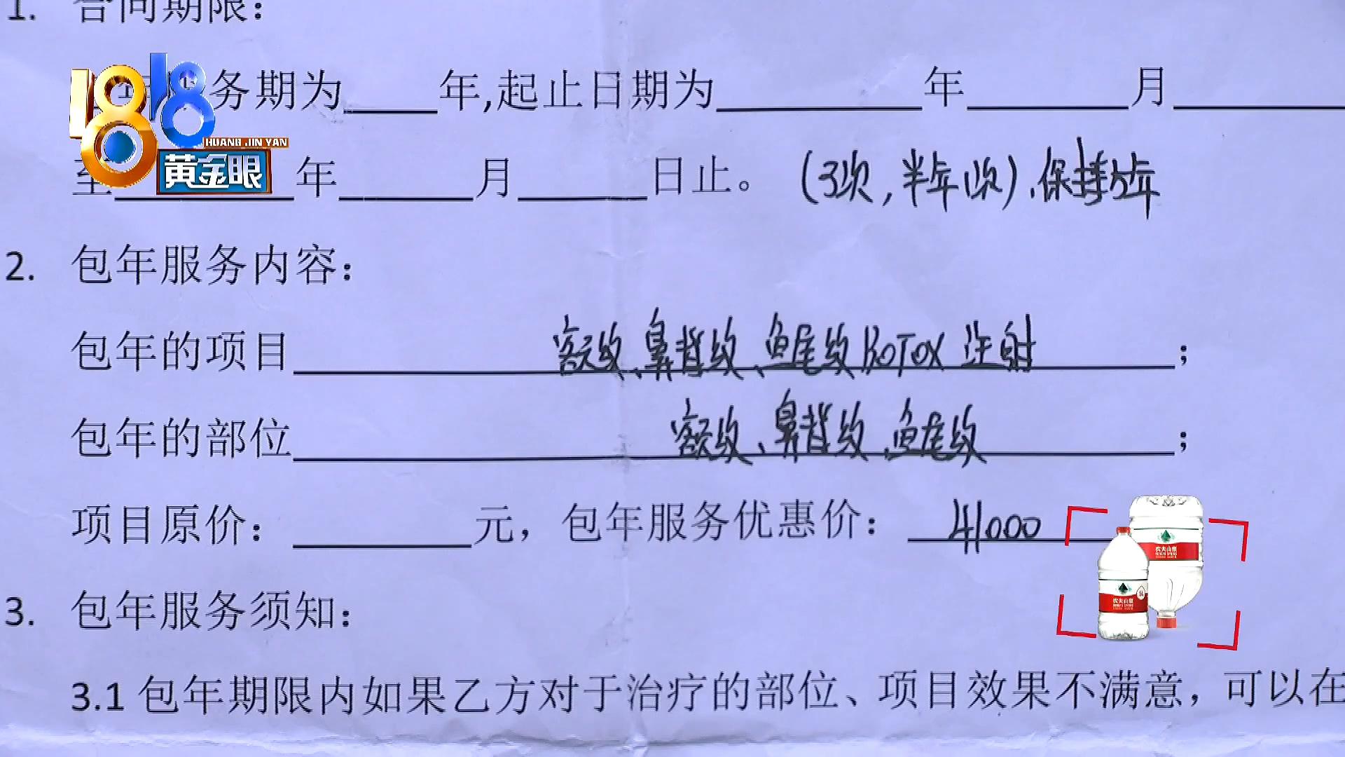 王女士:當(dāng)時(shí)交九萬(wàn)塊錢,他說(shuō)整個(gè)臉眼角紋,口角紋,臉部下垂都往上提上去。整個(gè)臉都提上去,這個(gè)果現(xiàn)在一直都沒(méi)有。