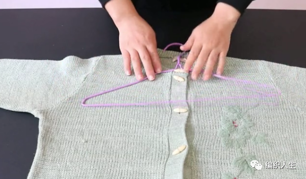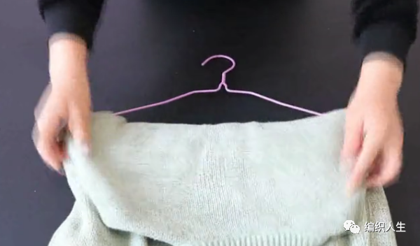 2、把毛衣的兩個袖子從衣架的邊緣伸進去。